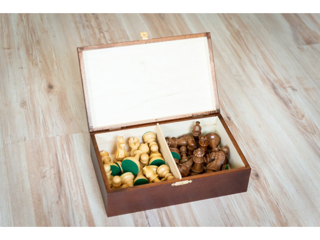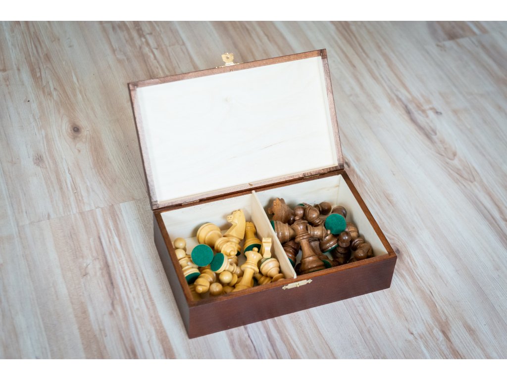 O cutie la îndemână și elegantă pentru depozitarea pieselor de șah. Cutia nu conține piese.