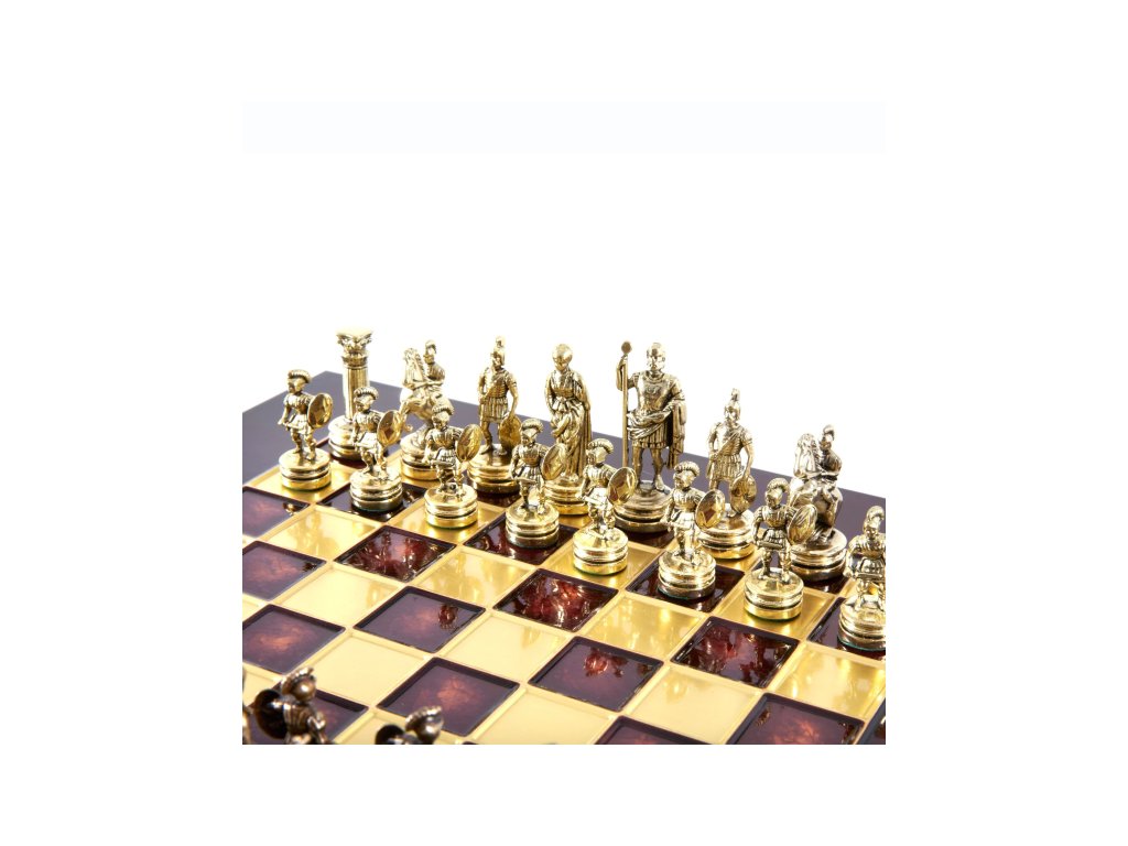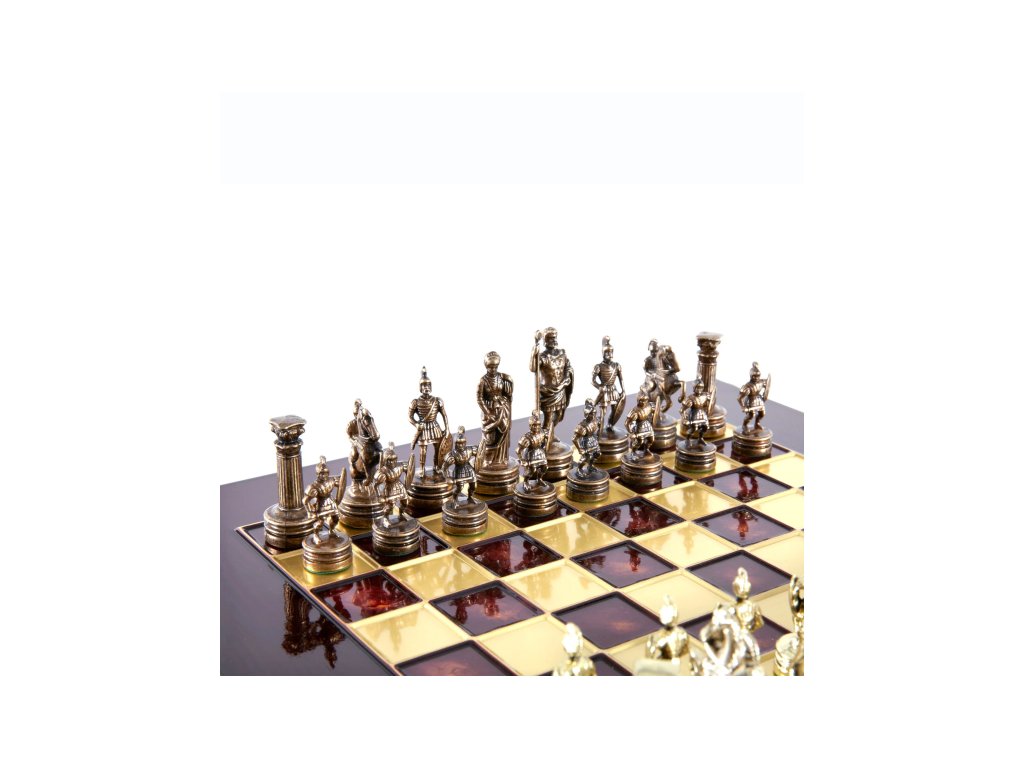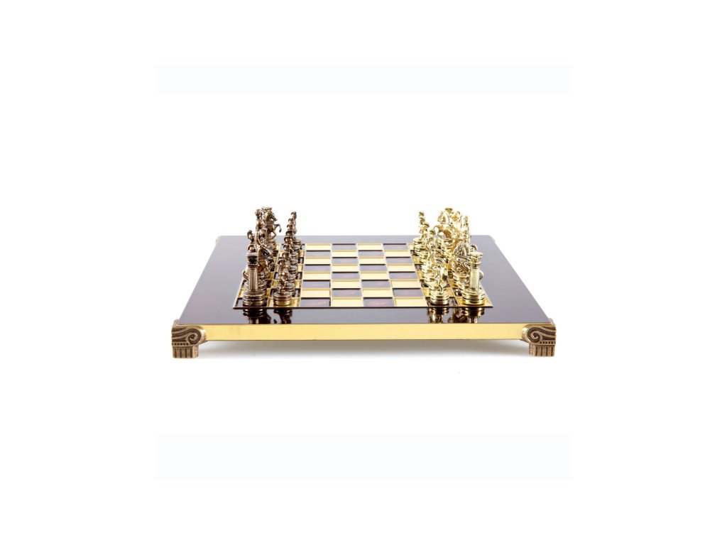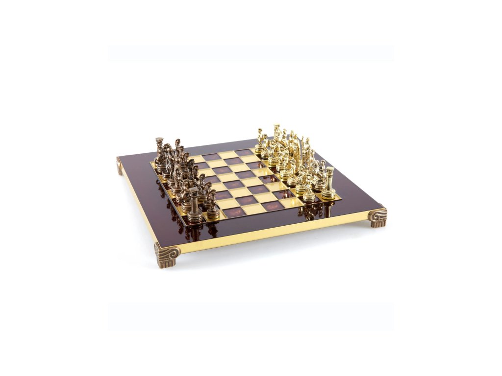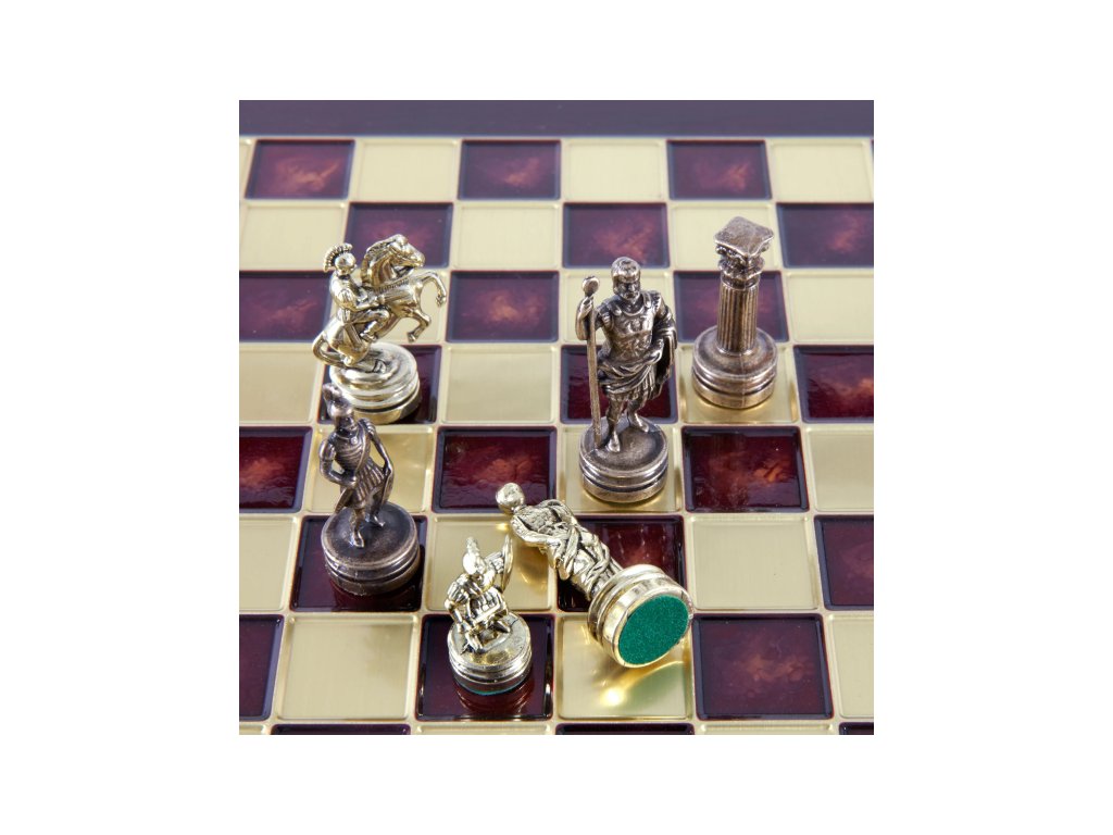 Greek-Roman Mini Chess Set | Zinc Alloy Pieces on Red-Burgundy Brass Board