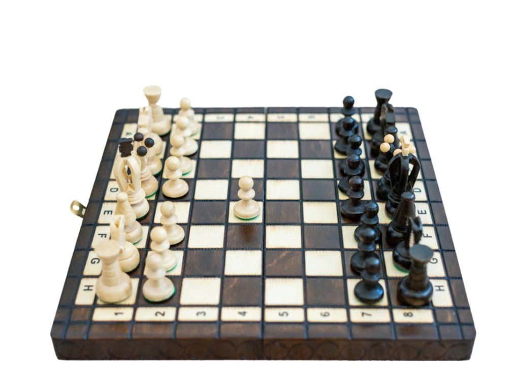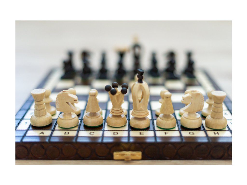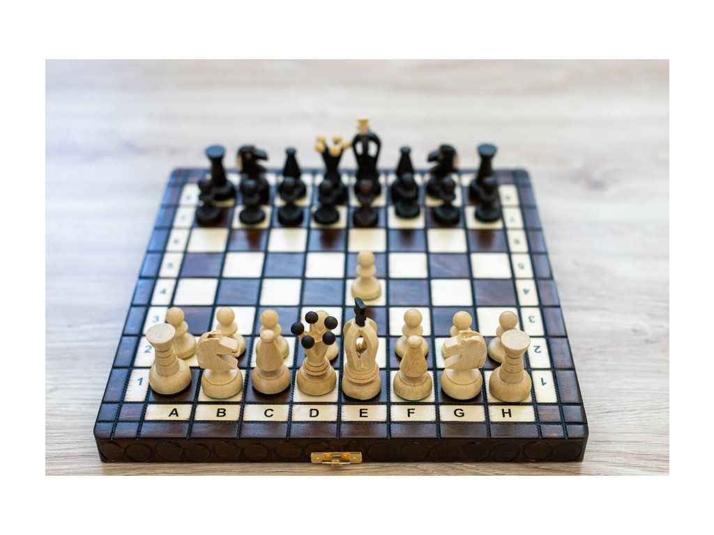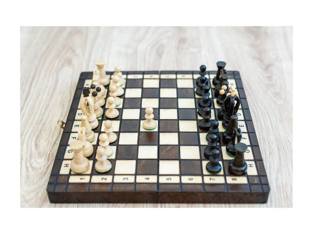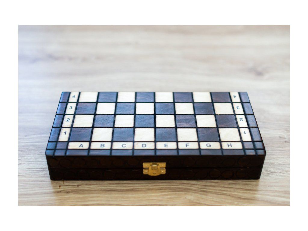 Un mic set de șah la îndemână, potrivit pentru jocul acasă, vacanțe, orice bibliotecă sau ca și cadou.
