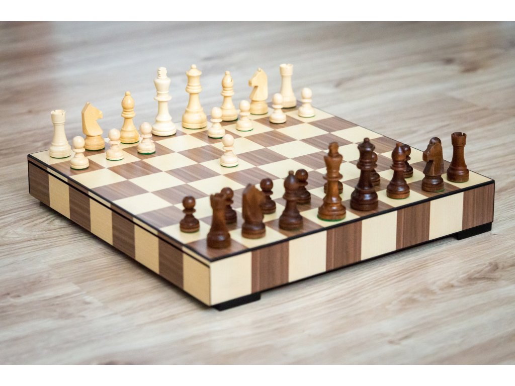 Setul de șah din lemn Exclusive aduce bucuria jocului, care este ascunsă direct în tabla de șah, în care există un sertar încorporat pentru depozitarea pieselor, care sunt întotdeauna disponibile, ușor de ascuns, iar setul de șah poate fi depozitat convenabil, de exemplu, între cărți.