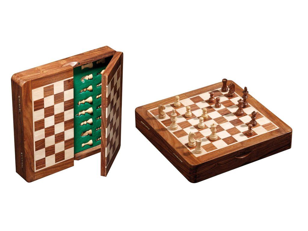 Piese de șah magnetice într-un cartuș magnetic. Piesele sunt depozitate în siguranță în interiorul tablei de șah, care oferă un spațiu excelent pentru depozitarea pieselor eliminitate în timpul jocului, precum și pentru împachetarea rapidă a setului de șah. Păstrarea pieselor în interior va asigura că acestea nu se vor pierde.