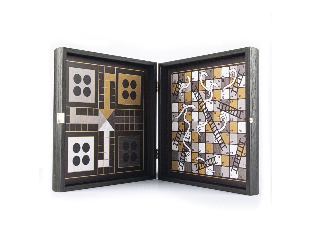 Îmbunătățiți-vă serile de joc cu un set de jocuri combinate 4 în 1 în stil modern, care combină clasicele atemporale șah, backgammon, ludo și șerpi într-un singur set sofisticat. Acest joc combinat, conceput pentru cei care apreciază seturile de jocuri de înaltă calitate și versatile.