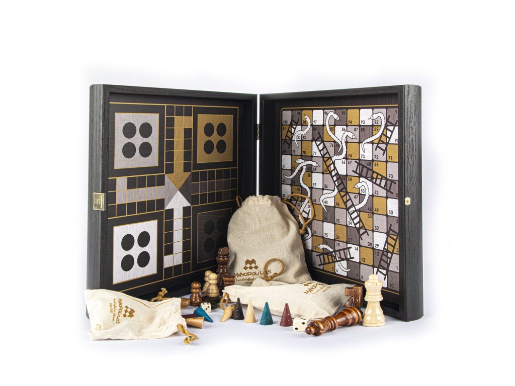 Bucurați-vă de patru jocuri clasice într-un singur set: șah, backgammon, Ludo și șerpi, oferind distracție fără sfârșit și varietate pentru serile de joc.