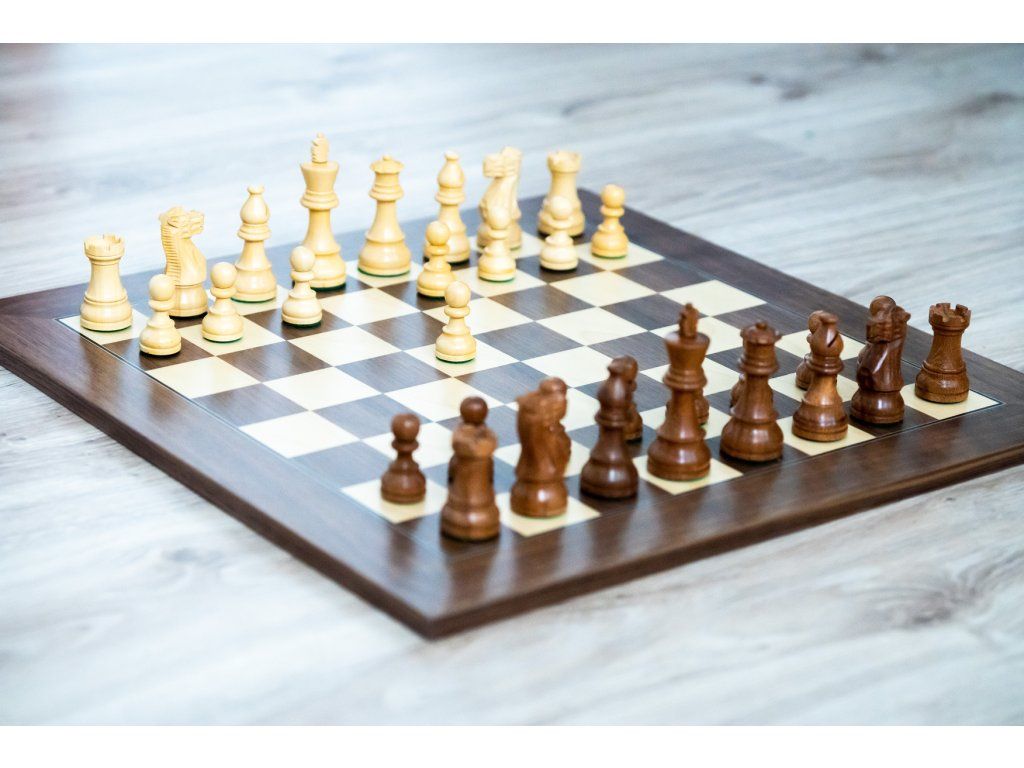 Tablă de șah realizată din nuc și arțar. Piese profesionale din lemn de acacia.